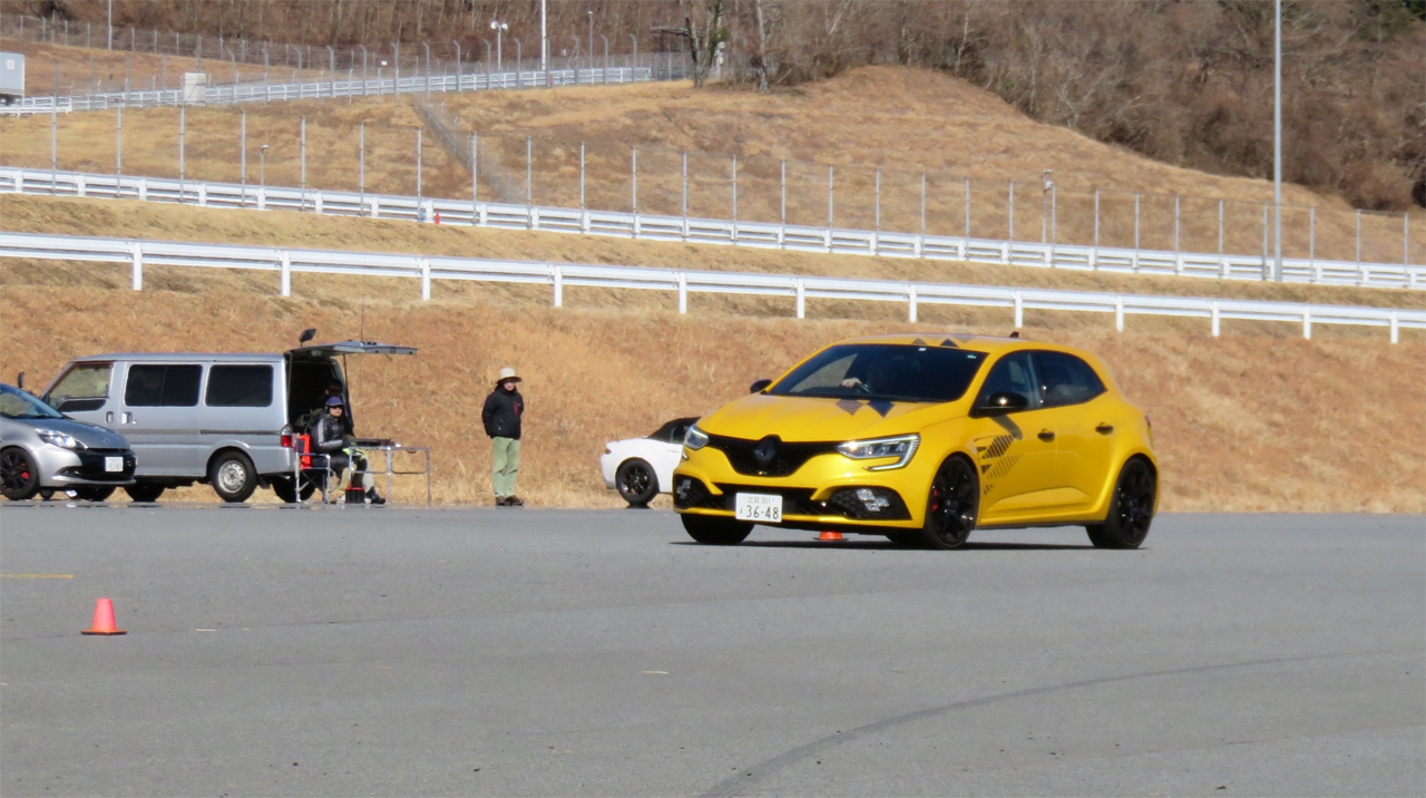 晴天なれど、とんでもなく寒くて風の強い日曜日。2回目のメガーヌRSウルティムをフィーチャーしたYRSドライビングワークショップFSWを開催。今さらながらにウルティムの動力性能の高さを実感。参加者が振り回しても音を上げないタフさは驚きだった。