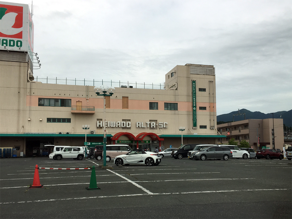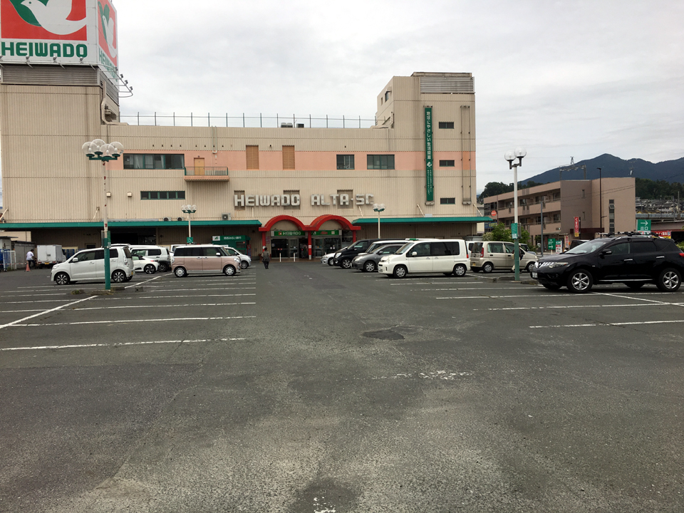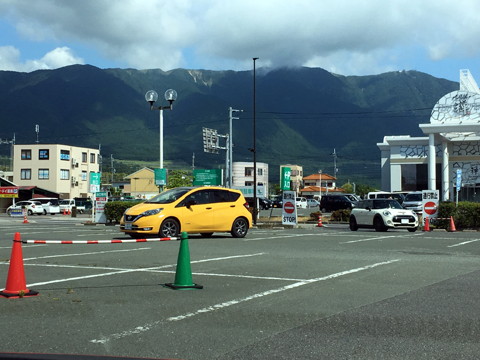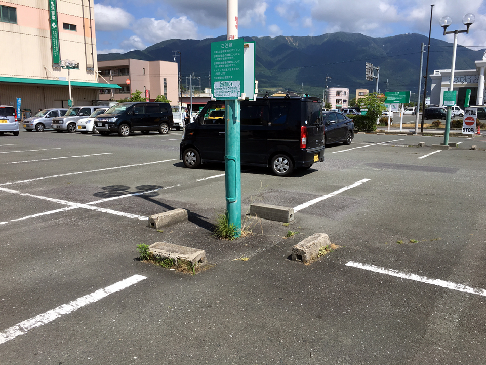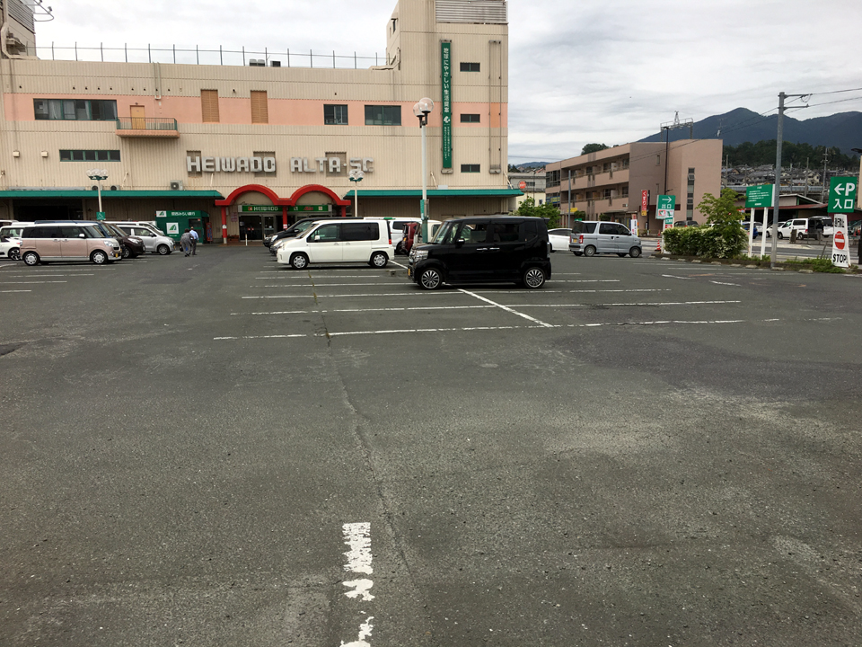 駐車場入り口から白線を無視してスーパーマーケットの入り口近くへ一直線