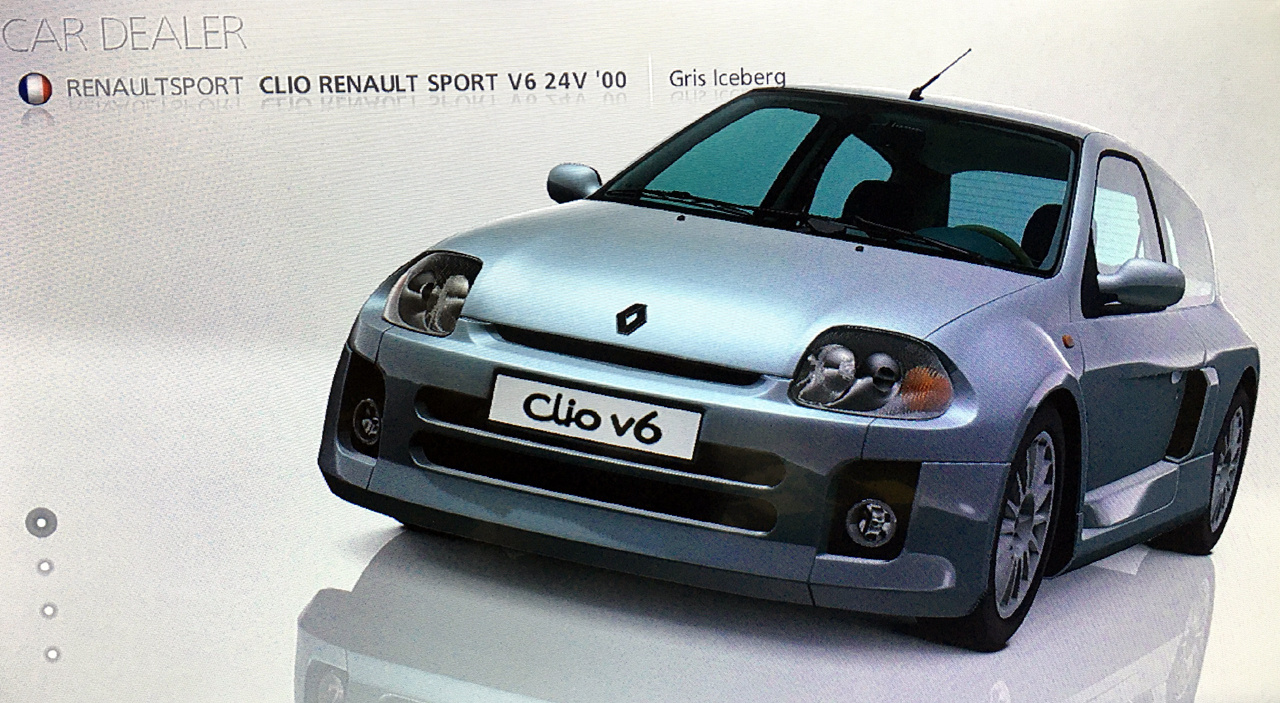 さて、そうなると気になるのがルノーです。ゲーム内の数あるカーディーラーやチューナーの中からルノーを選ぶとルノースポールがあります。最初にお金を出して購入できるのが’08メガーヌRSと’00クリオRS V6 24Vです。