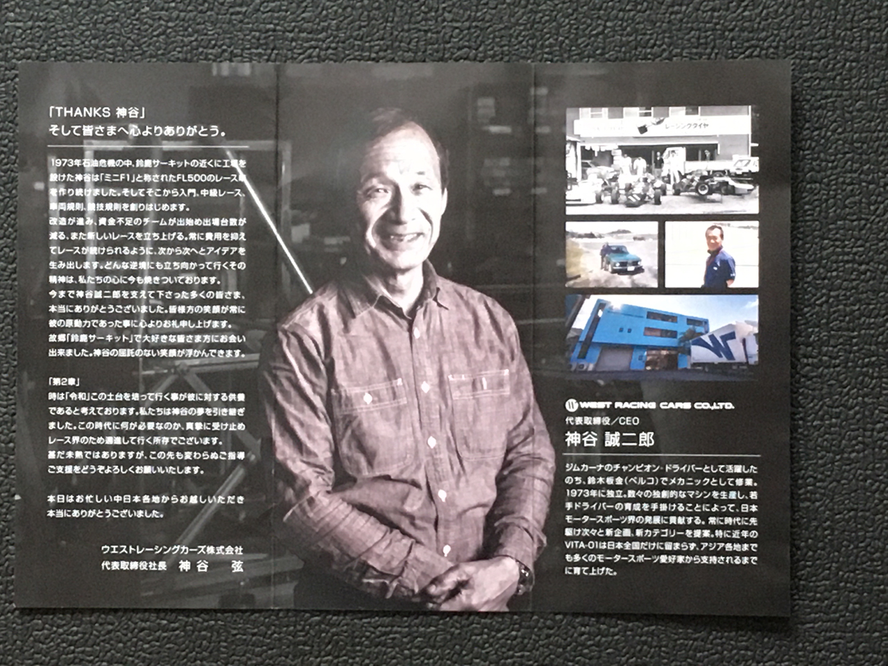 昨年末亡くなった公私ともにお世話になった神谷誠二郎さんを送る会が「Thanks神谷」と題して鈴鹿サーキットで執り行なわれた。