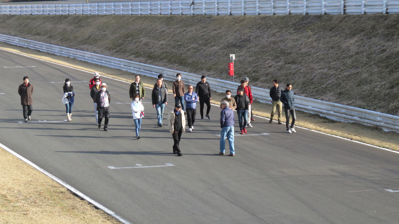 そこで加速し減速するクルマのタイヤのグリップがどう変化するか説明しながら歩きます