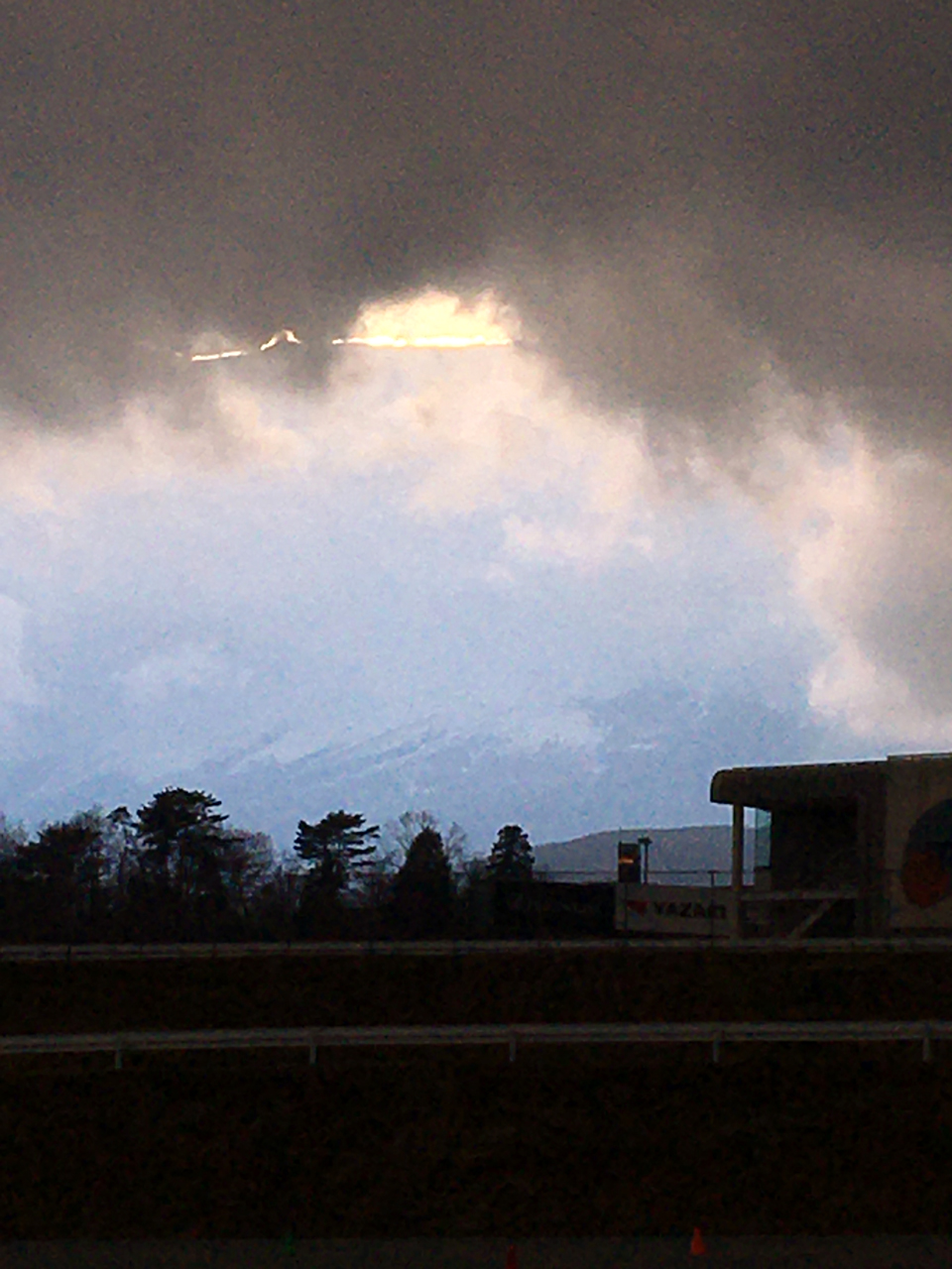 富士山の方向になにやら神秘的な光が