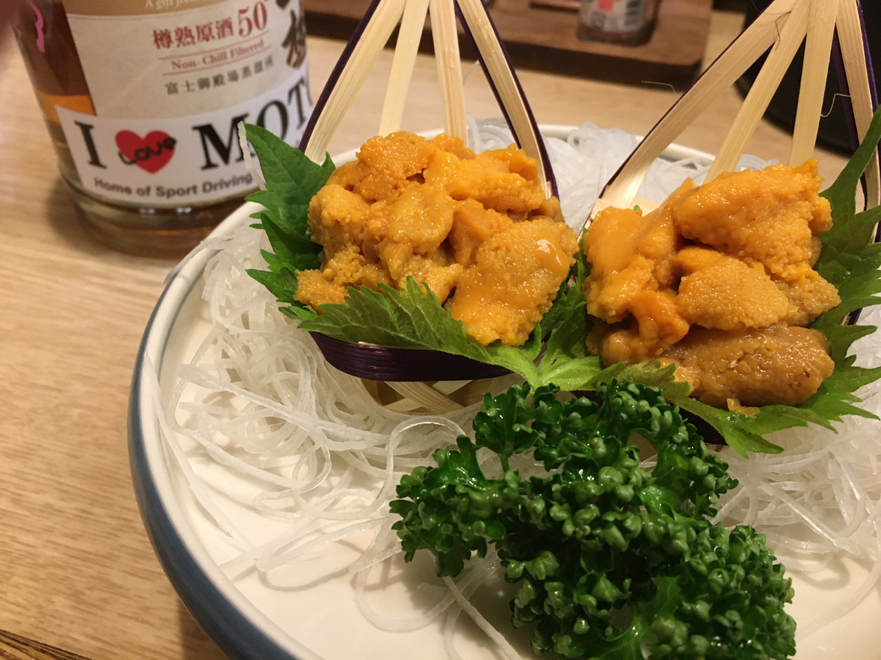 わさびの葉っぱの上の本わさびがたまらない