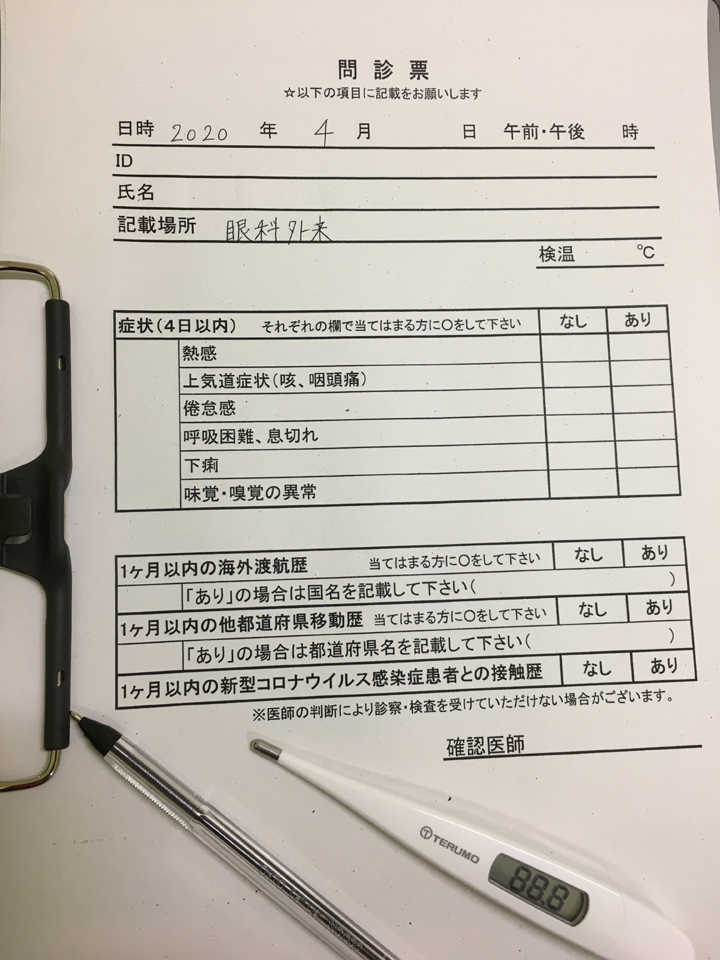 夜9時半ごろ始まった検査はいろいろな機械を使って行われた。ひとつの検査が終わるとどの結果が出るのを待ってから次の検査。眼科病棟には担当してくれる仁木先生と自分だけ。診てくれるだけでほんとうにありがたかった。検査に1時間ぐらいかかったと記憶している。全ての検査が終わり先生に診察室に呼ばれる。
