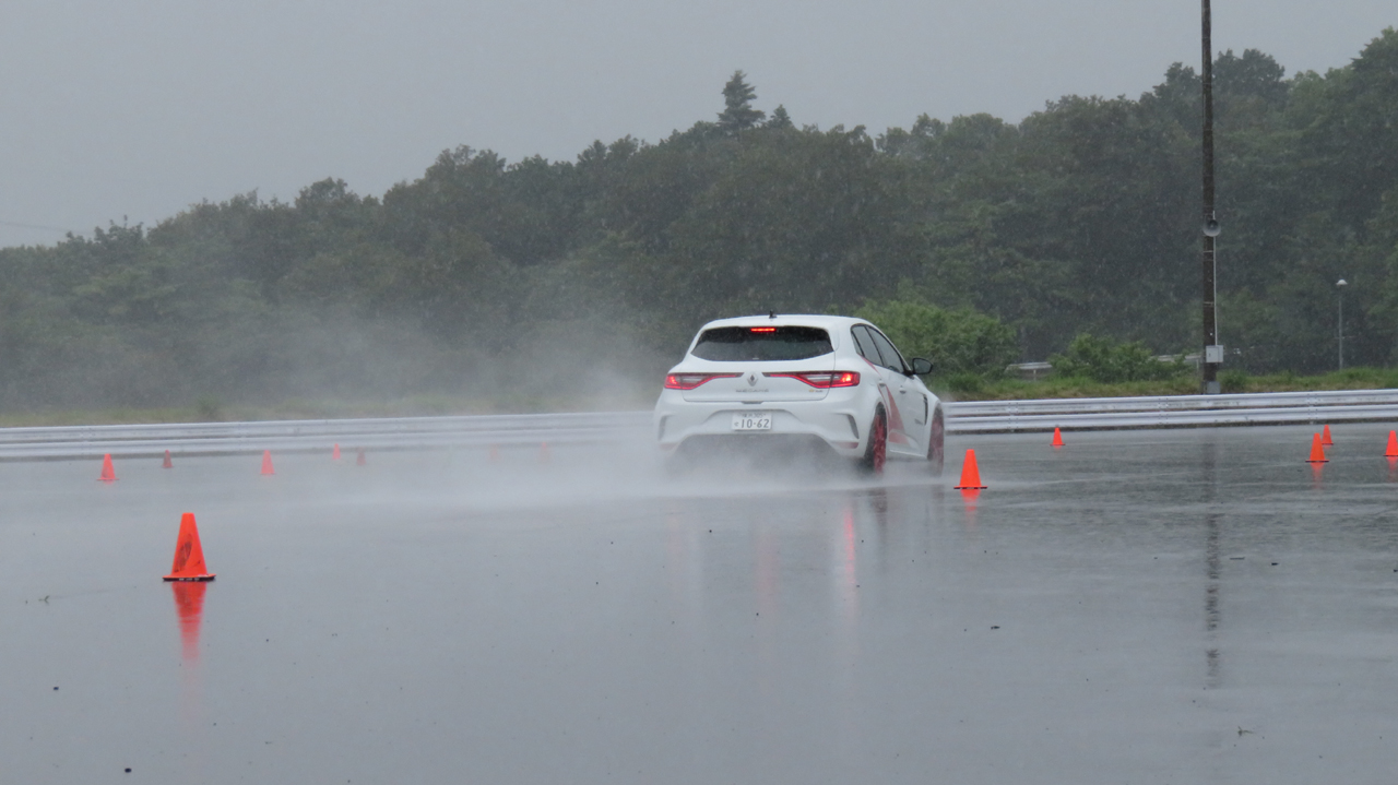 冠水しているのとフロントタイヤのグリップが増えているのがわかるし