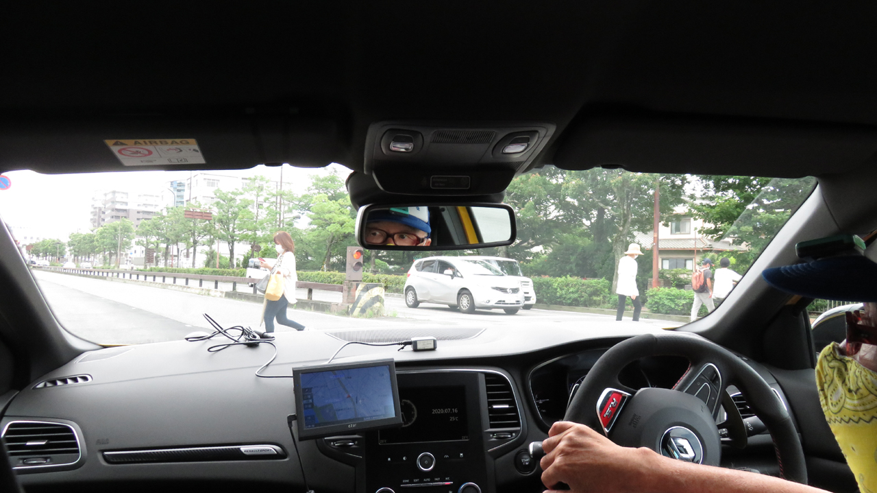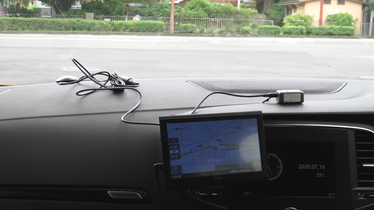 さっそく婦警さんがGPSとロガーをダッシュボードの上に取り付けてくれて
