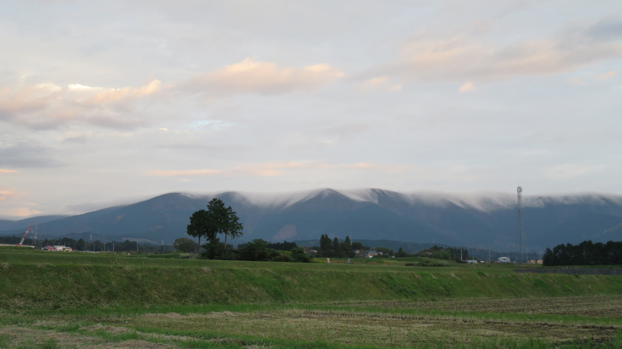 山の頂から水があふれているような雲が