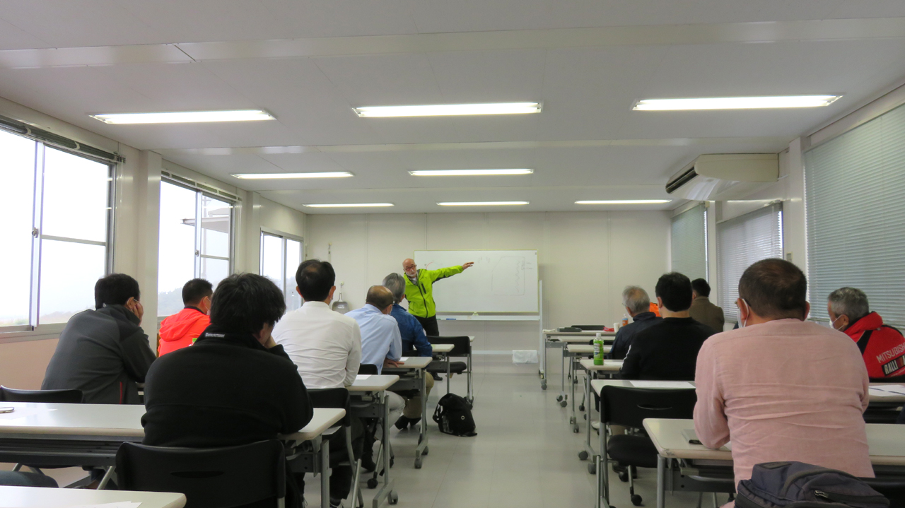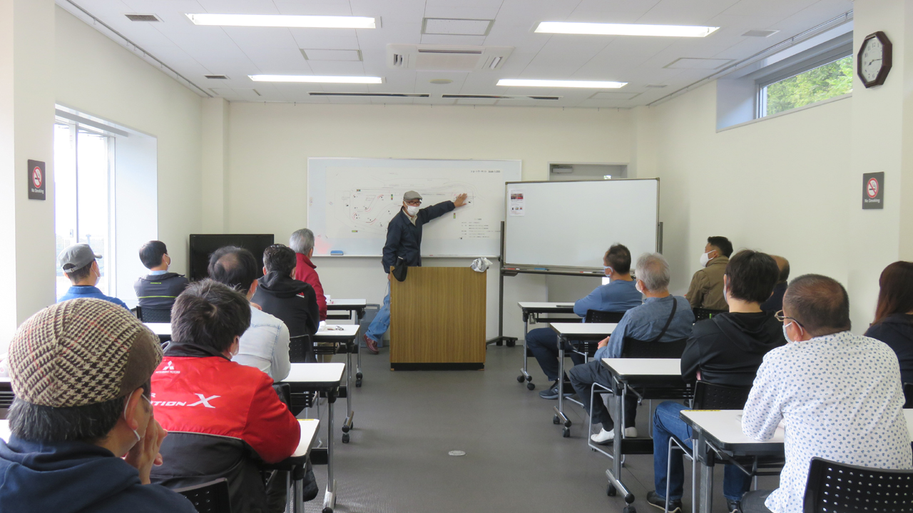 コース歩行が終わったら教室で進行の説明と走行の注意