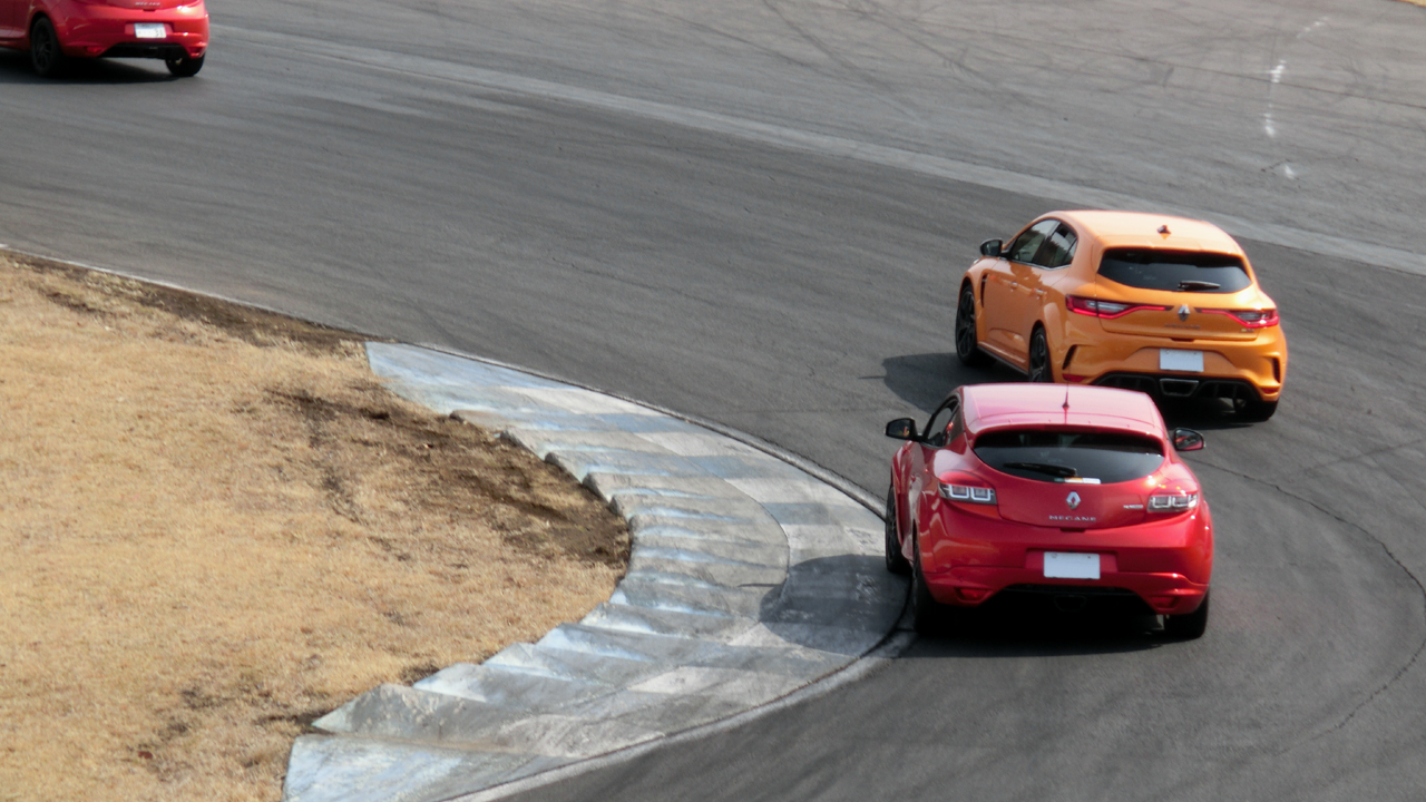 スクールカーとして最初に提供してくれたトゥインゴGTはスクール往復の2年半で3万8千キロを走りトゥインゴ ゴルディーニ ルノー・スポールにバトンタッチ。2年後にルーテシアⅣRSシャーシスポールに選手交代。その後ルーテシアⅣシャーシカップ、メガーヌⅣRS、ルーテシアⅣRSトロフィー、メガーヌⅣRSトロフィーと、ルノー・ジャポンは次々と運転することが楽しいクルマを貸してくれた。ユイレーシングスクールのインストラクターとしてだけではなく公私ともに望外の喜びを感じている。実際、それぞれのクルマをテーマにクルマ本来のあり方やクルマの操り方についてスクールに参加してくれた方に掘り下げて話すことができたし、それらのクルマを使って教育的動画を制作したり、ボクが目指しているクルマの楽しみを広く伝えるにはうってつけの相棒達だった。