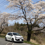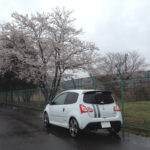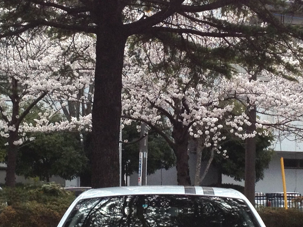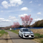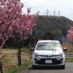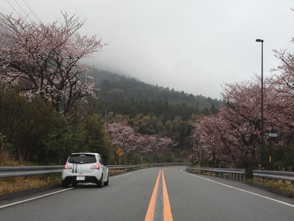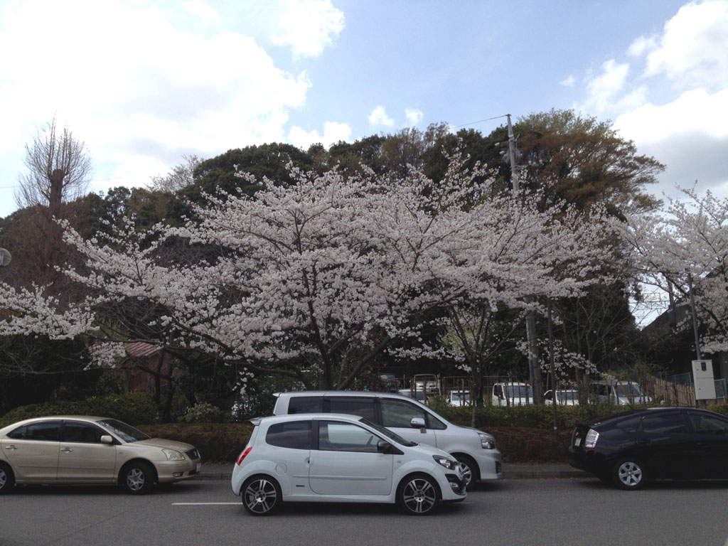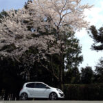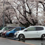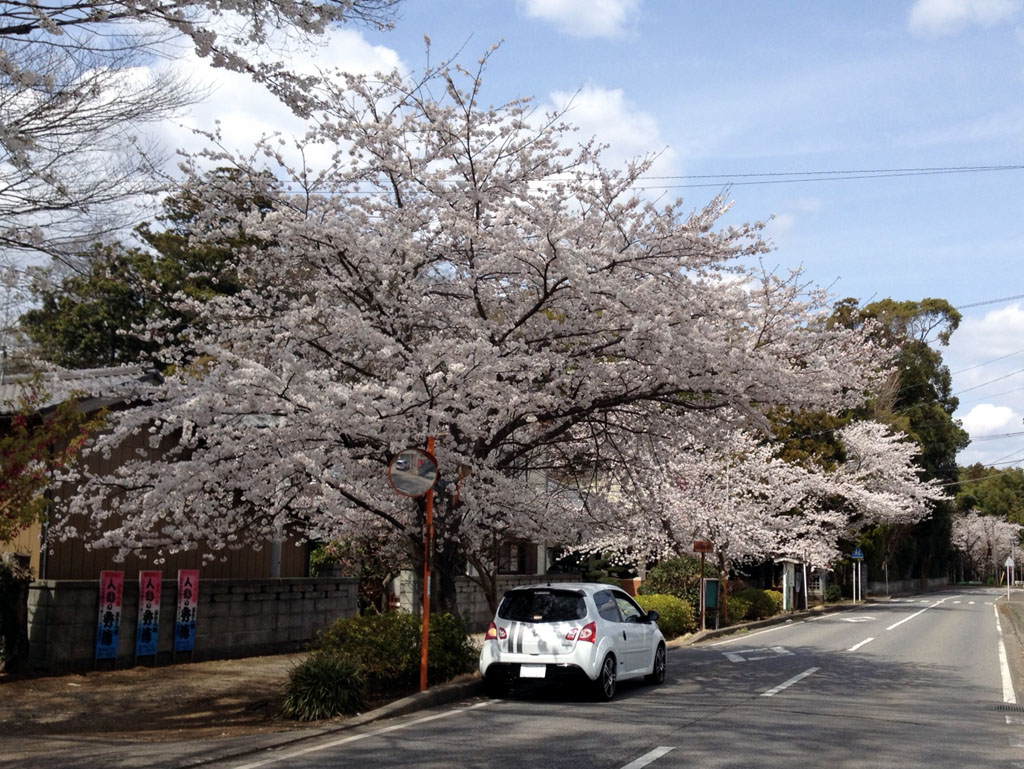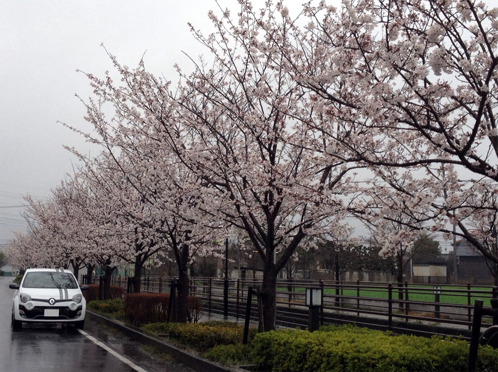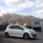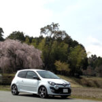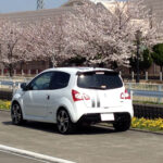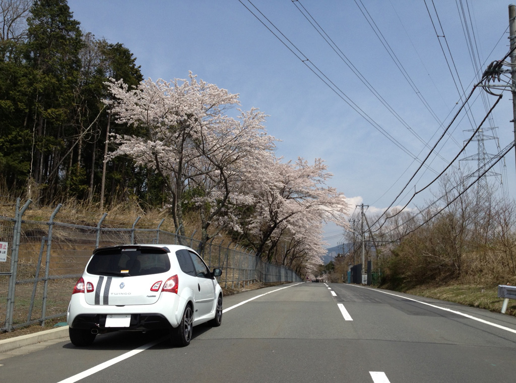 桜の木の下で。この時ばかりは白いトゥィンゴ ゴルディーニ ルノー・スポールで良かったなと。