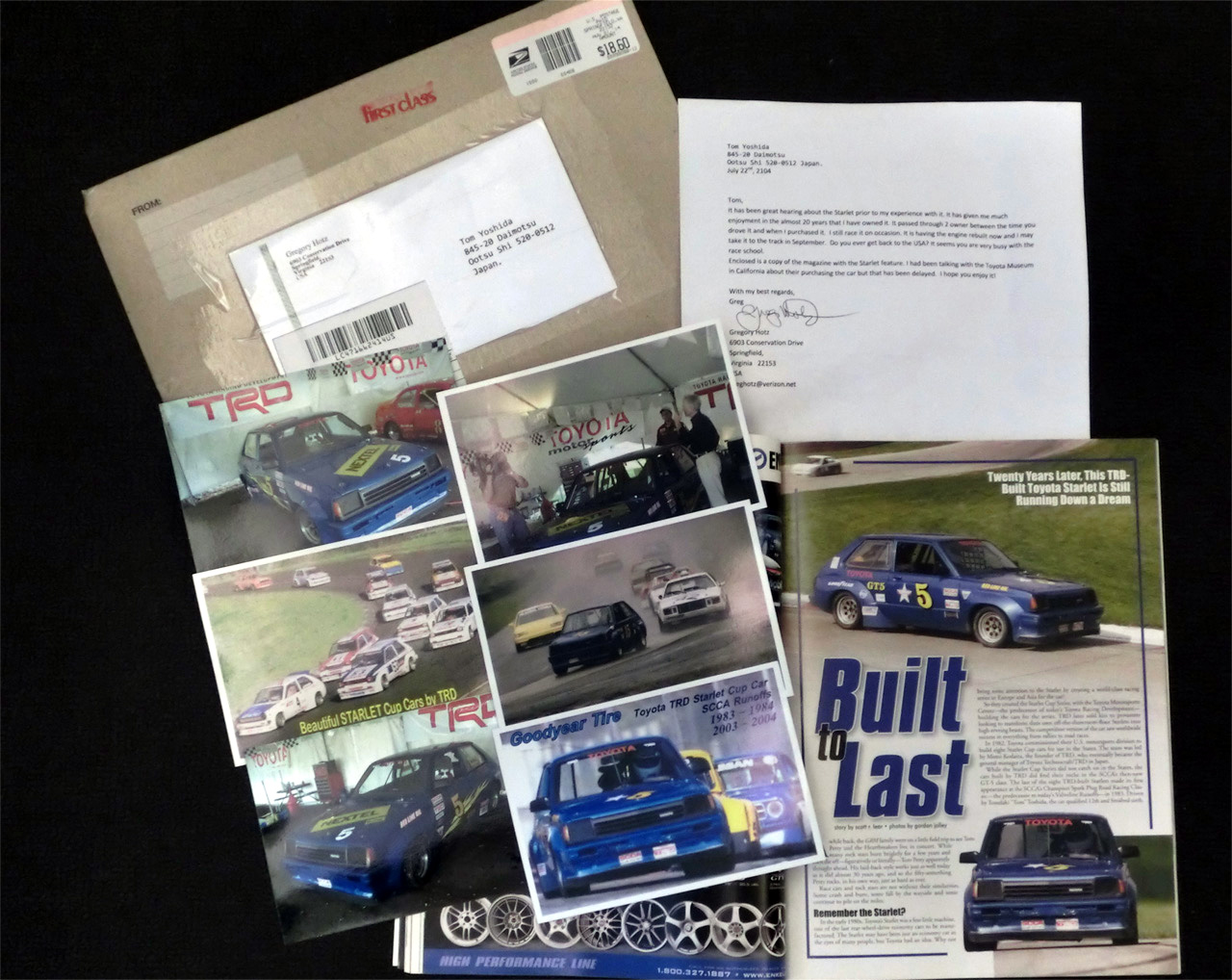 1982年12月。KP61でGT5のレースを始めた。そのKP61はふたりのオーナーの手を経てGreg Hotzの手に渡ったのが2004年。GregはフェイスブックにKP61のことを書いたのを見つけ、KP61が紹介されたアメリカの雑誌、グラスルーツモータースポーツを送ってくれた。今は2014年。GregはまだそのKP61でレースを続けている。あれから32年。ホモロゲーションが切れるとレースに参加できないFIA-ASNのレースでは考えられないライフスパンだ。