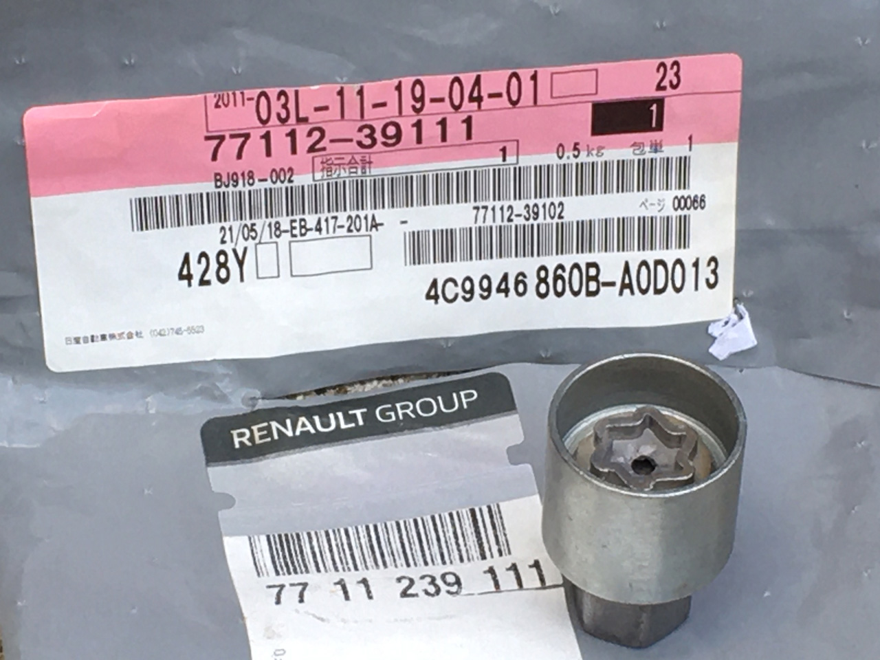 下の写真左がお守りで右がアダプターと品番