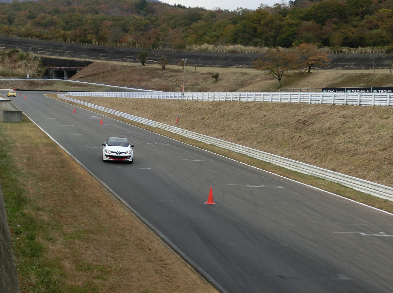 運転して楽しいRSモデルの良さをさらにさらに理解してもらおうというルノー・ジャポンのこの企画。事前にドライビングにまつわる資料を送り予習をしてもらい、富士スピードウエイのショートコースでは助手席から誰にでもできるクルマを安定させて走るための操作を見てもらい、翌日は駐車場に作った半径22m直線80mのオーバルコースをできるだけ速く走ってもらった。