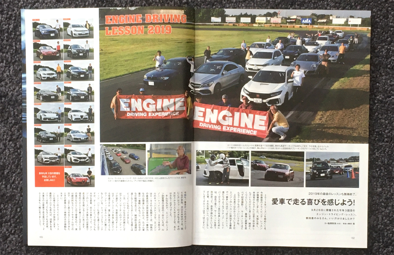 来年20年目を迎えるエンジンドライビングレッスンの日程が決まりました。従来の年3回に戻り、3月2日(木)、5月25日(木)、10月5日(木)に開催します。午前中は筑波サーキットのジムカーナ場にパイロンで作ったオーバルコースでイーブンスロットルとトレイルブレーキングの練習。編集部が用意するお弁当を食べて、午後は1周1キロちょっとのコース1000を走りっぱなし。サーキットを走ったことのない方にもサーキット走行のベテランにも満足していただけるカリキュラムです。多くの方においでいただきたいと思っています。
