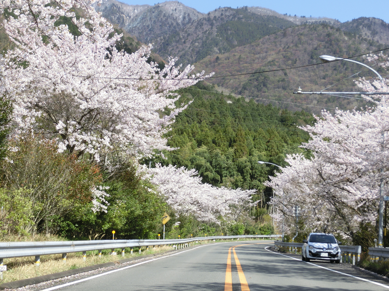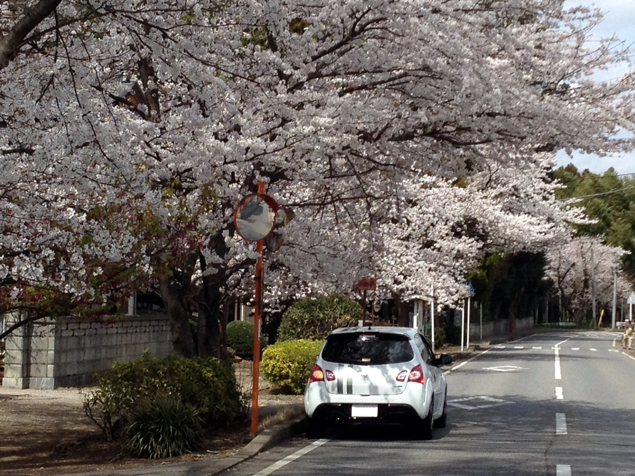 毎年出迎えてくれる富士スピードウエイ近くの枝垂桜を背景にとか