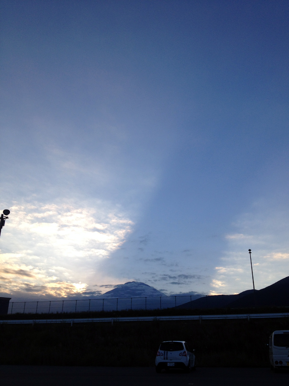 ドライビングスクールの片付けが終わり見上げれば富士山の陰がたなびいていたり