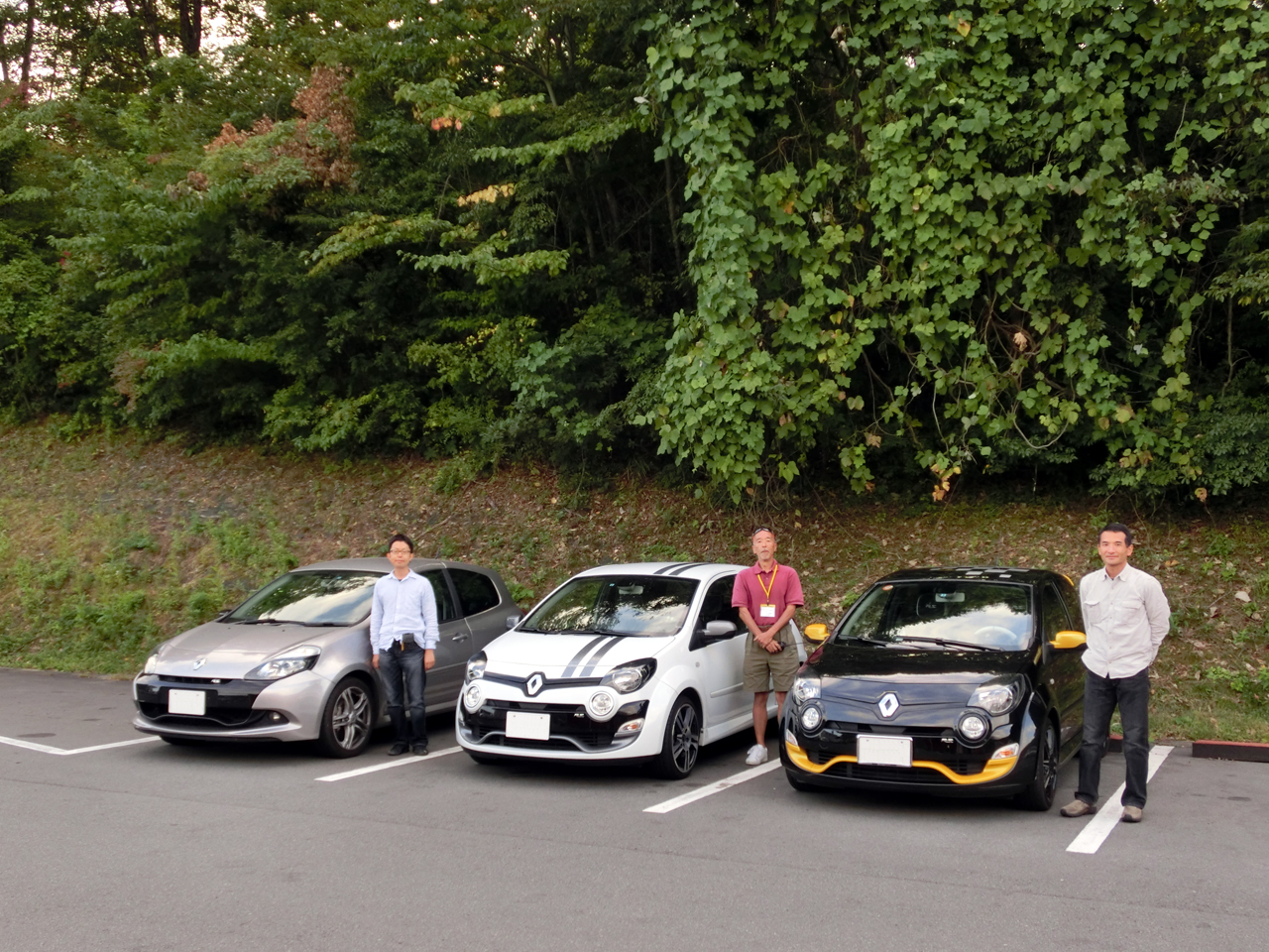 増え始めたルノー・スポールユーザーのWさん、Nさん、Hさん(右から)とトゥィンゴの前でポーズしたり