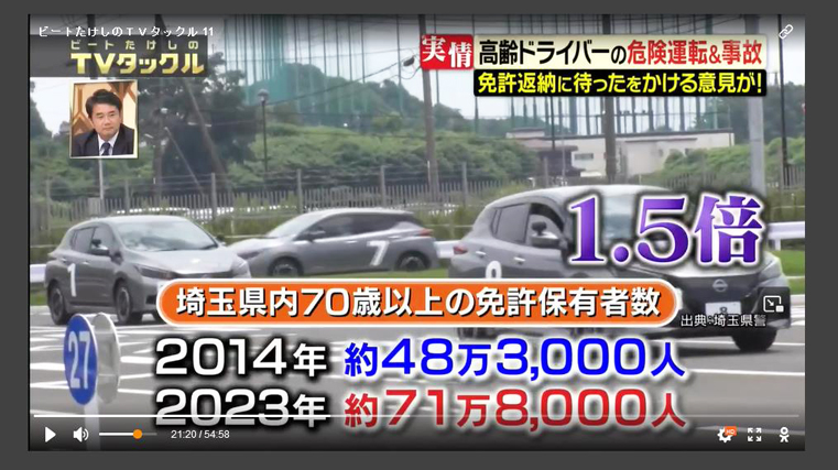 今年は高齢者による交通事故のニュースが多いような気がする。メディアも同じような認識なのかも知れない。最近いくつかの高齢者と運転をテーマにした番組が放送された。