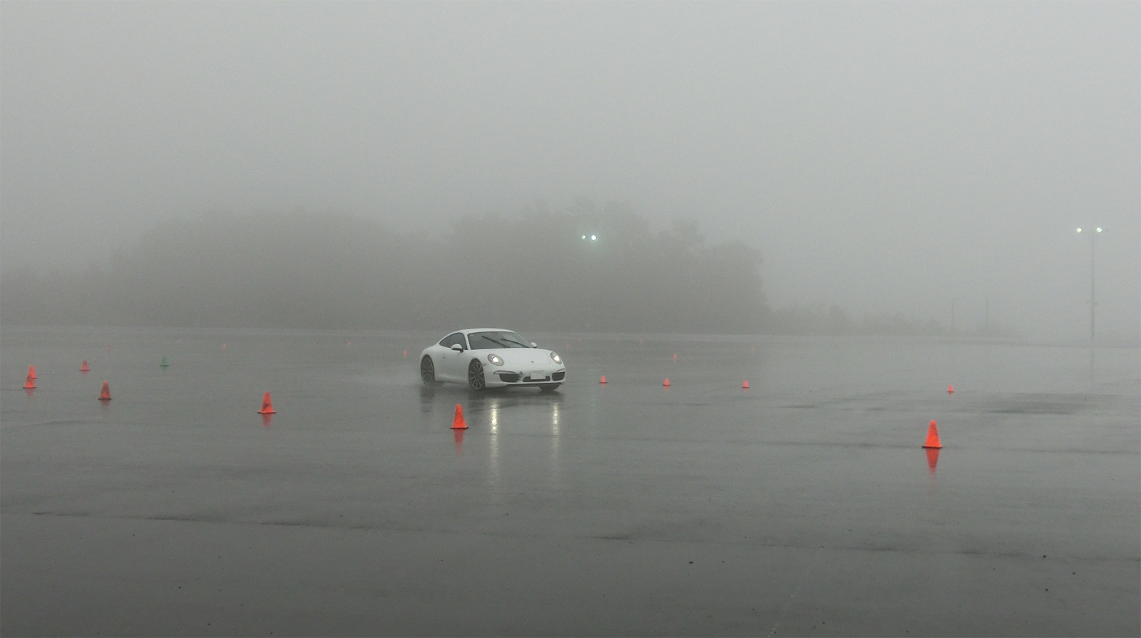 雨が降ると参加者に「今日はラッキーですね」、「今日はお日柄もよく」といつも言うものだから、常連はもちろん初めて受講する人もウエット路面に対する抵抗感は少ない。せっかく練習するのだから、操作が正しいかどうかはっきり結果の出る雨は願ったりかなったりではないか。