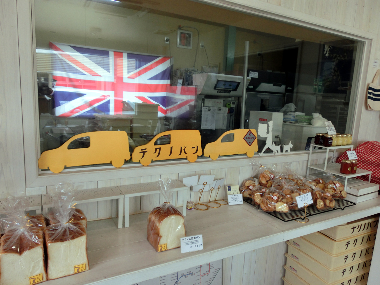 店内にはテクノパンオリジナルのトートバッグやマグカップが