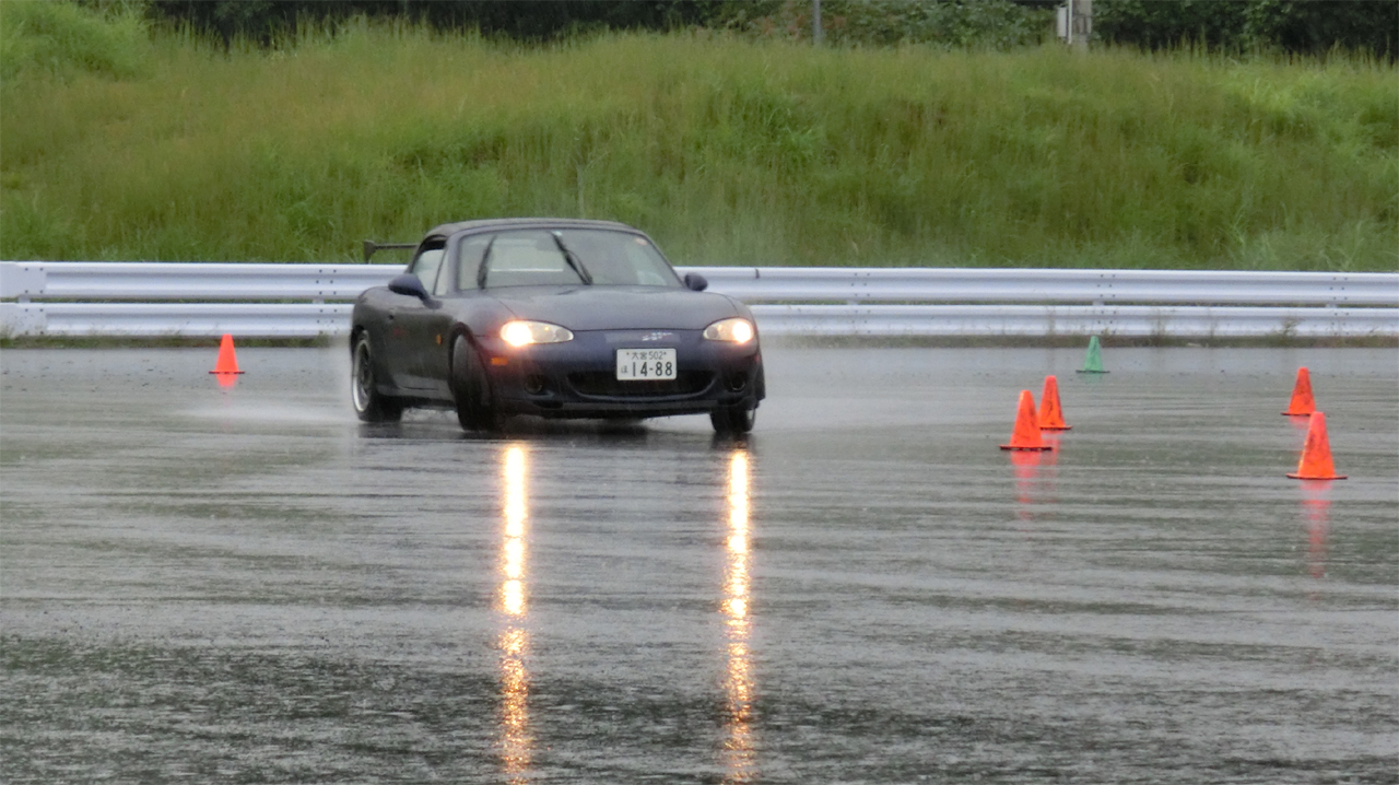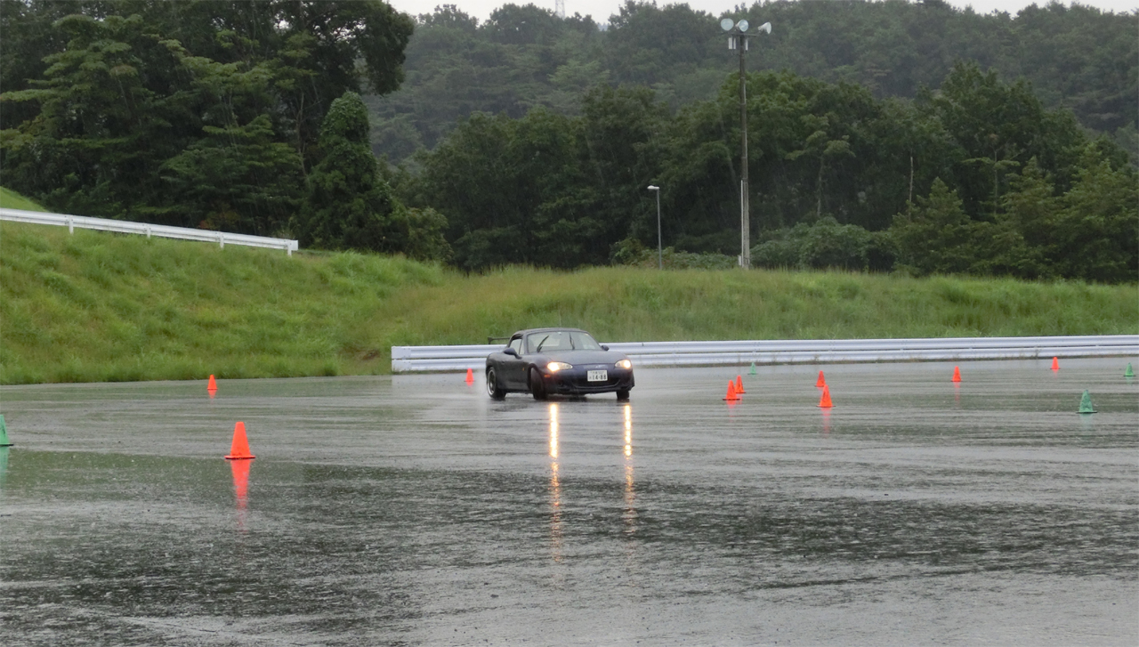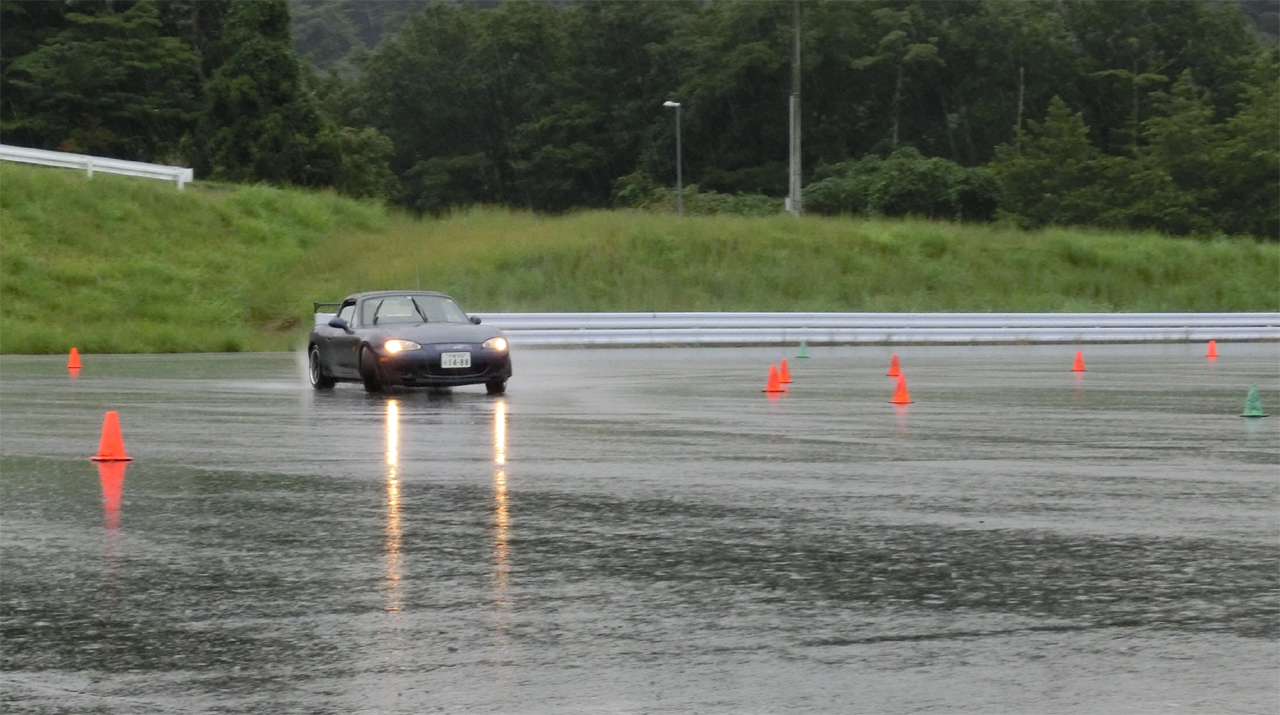 ユイレーシングスクールのモットーはそれなりに、だから、これまでは雨でもYRSオーバルレースを開催してきたけど、ここは発想を転換してスキッドスクールに変更してみてはと諮ったらみなさん賛同してくれた。Yさんが見つけてきたR.S.Monitorで試したいこともあったものだから。