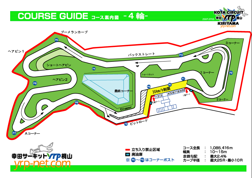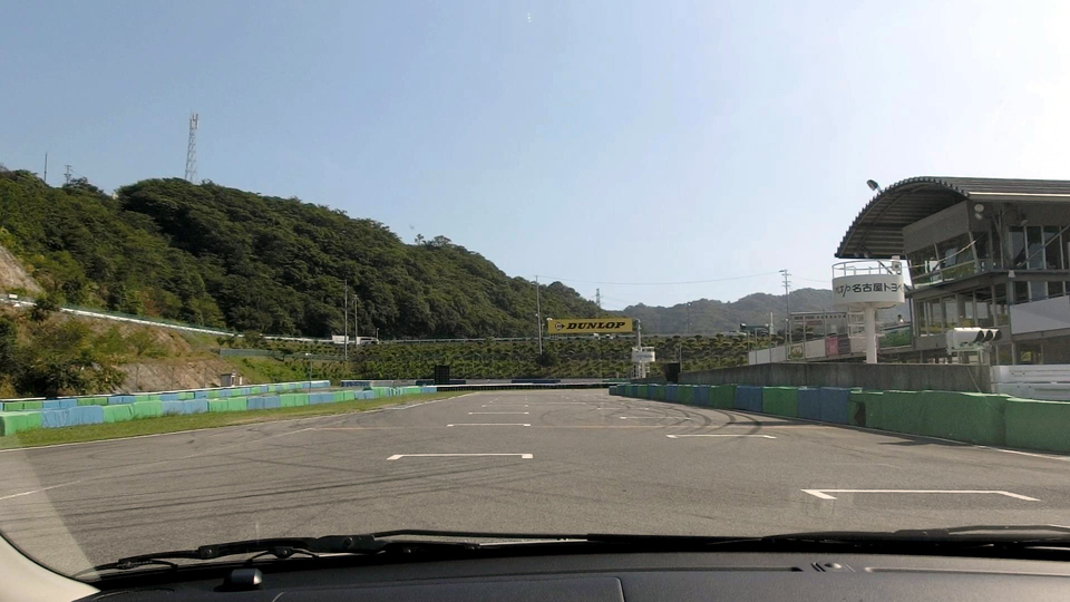 幸田サーキットは1周1,085m。長いハイスピードコーナーはありません(3速のコーナーは2ヶ所あります)が、次々に現れる形状の異なるコーナーを消化するためにクルマの姿勢をフラットに保つことが求められるコースです。