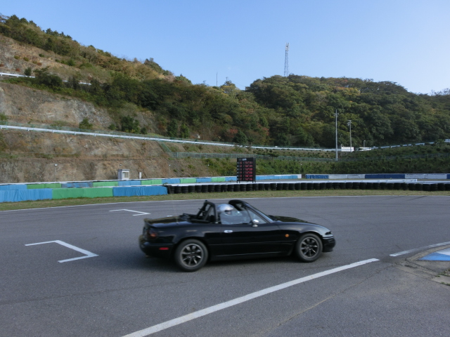 幸田サーキットは回り込んだコーナーが多いのと、ステアリングを切った状態でブレーキングする場面が多いので、トレイルブレーキングとイーブンブレーキの練習にうってつけ。ブレーキとステアリングを連動させてロールコントロールとピッチコントロールを同時に進めるテクニックが学べる。