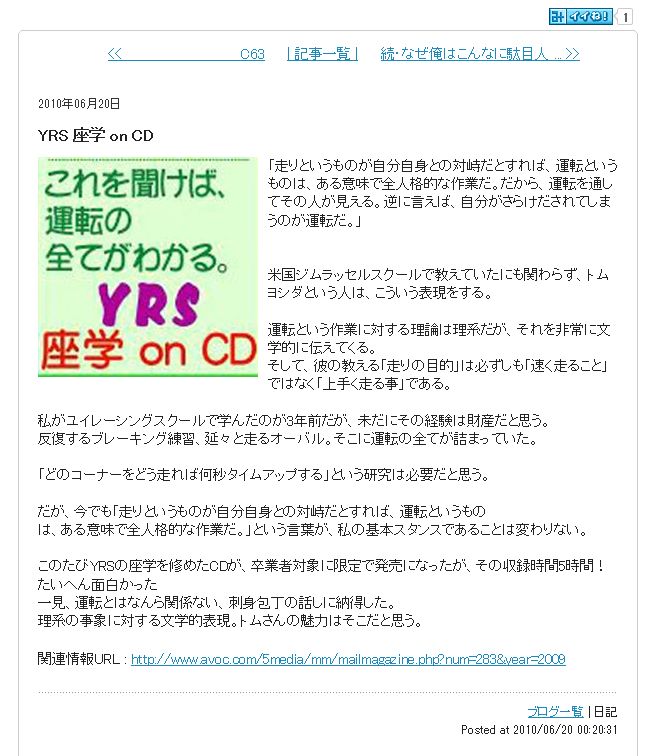 いつだったか忘れたが、YRSの卒業生が「こんなブログがありました」と知らせてくれた。
