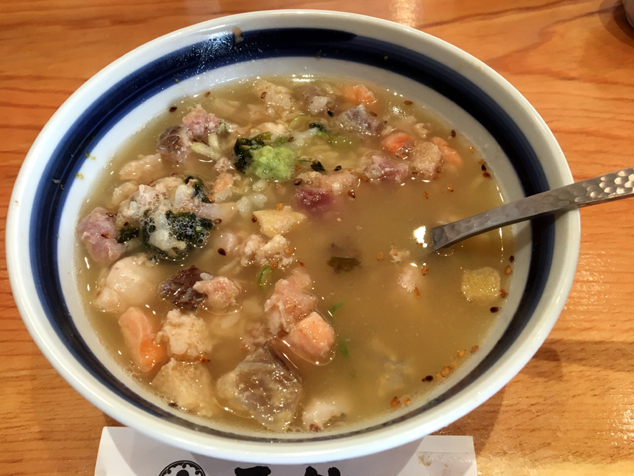 お刺身のうまみがしみこんだご飯に味のなめろうを乗せて金目鯛のだしをかけて食べるまご茶漬け。静岡名物だと初めて知った。
