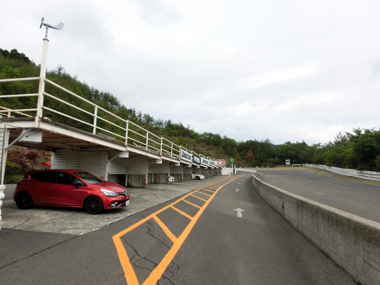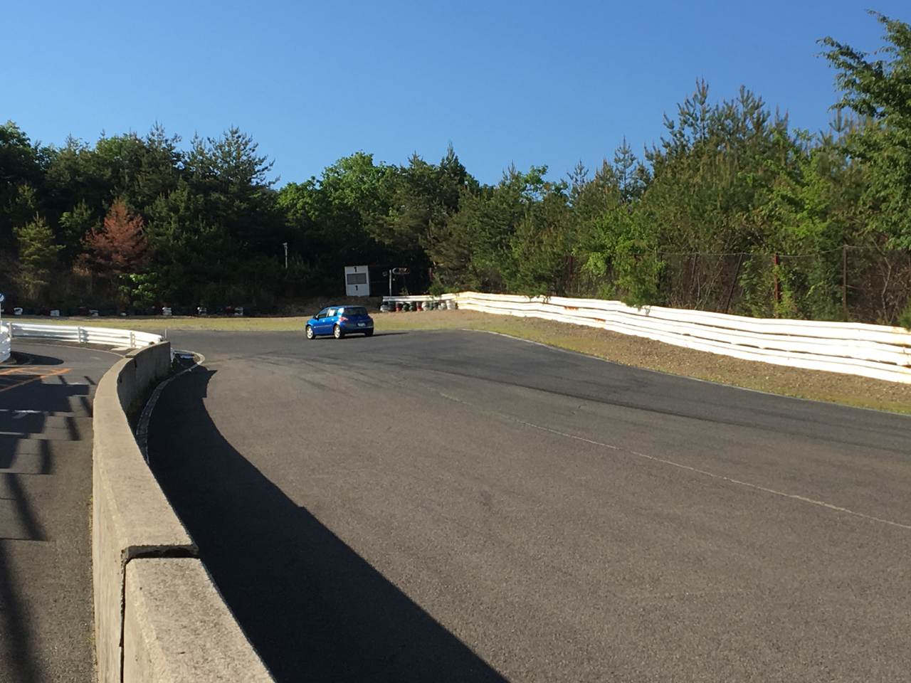 登りながらのターンインが必要な1コーナー方向を望む