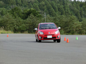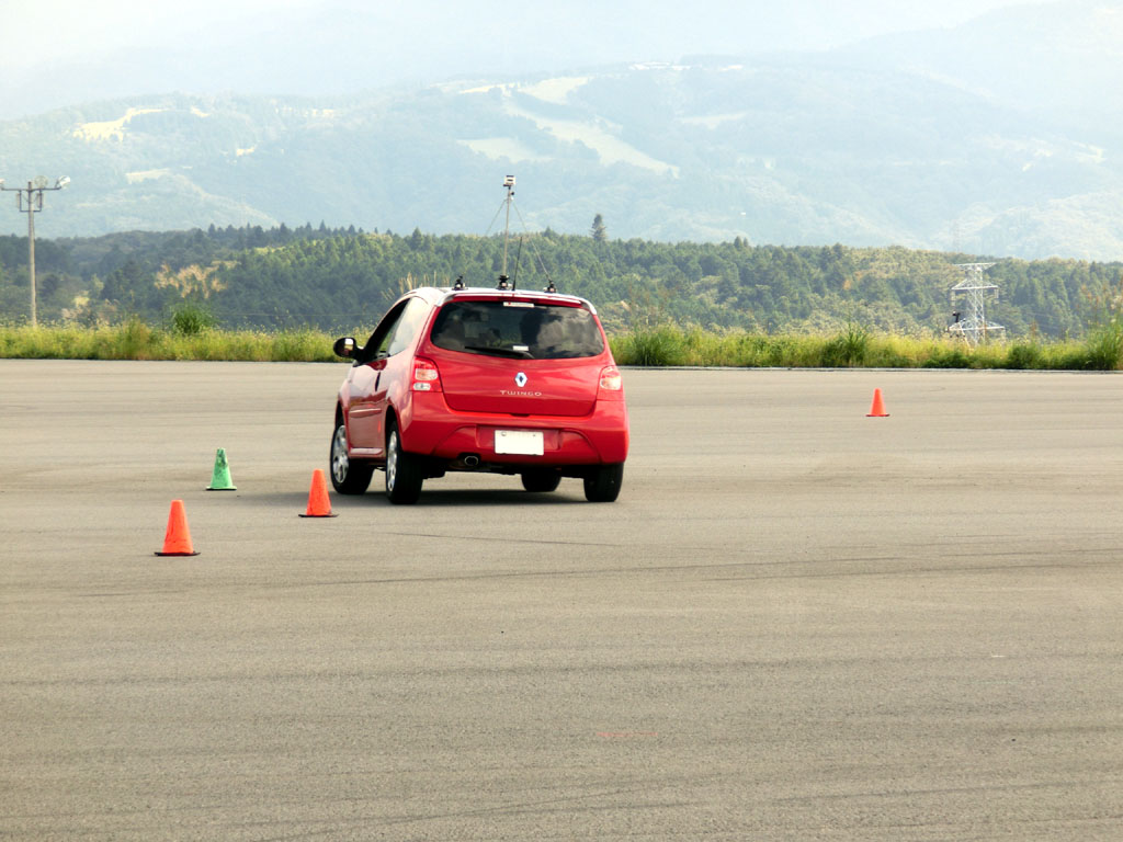 YRSルノー・トゥインゴGTは、受講生に試乗してもらったり、FRしか乗ったことのない人にFFを味わってもらったり、リードフォローのリードカーとして受講生を引っ張ったり、ドライビングポジションの説明に一役かったり、カメラカーとして車載映像を撮影したり、そしてなにより毎回重い機材を満載してスクールの準備にと大活躍している。