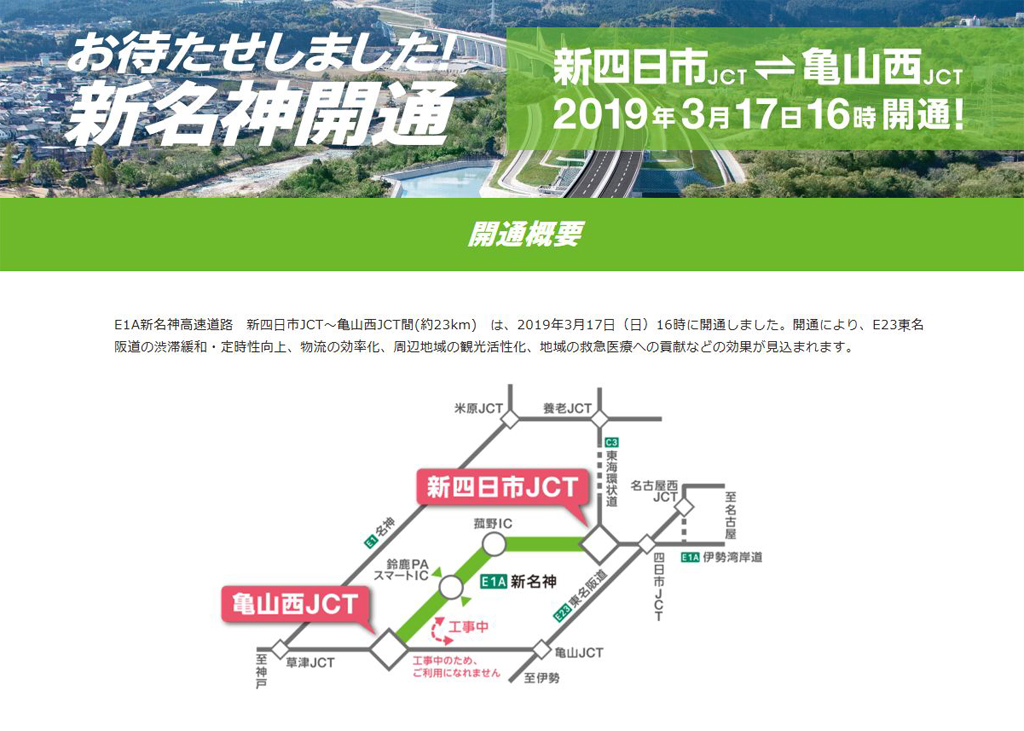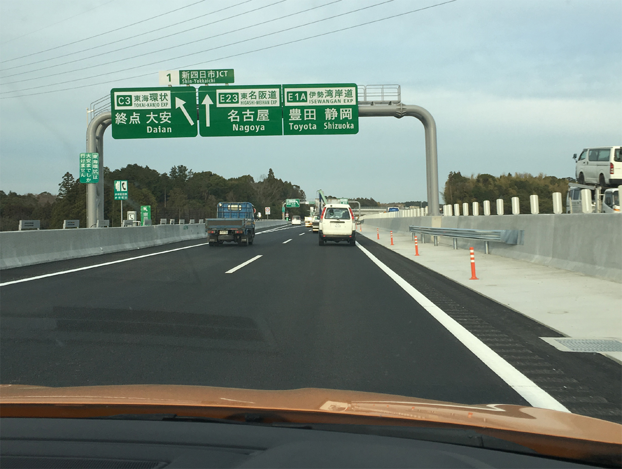 自宅から富士スピードウエイや筑波サーキットに向う時。京都東ICか栗東ICで名神に乗り草津JCTから新名神を利用するのだが、新名神の亀山JCTからはノロノロ運転が当たり前の東名阪を使わないと伊勢湾岸にたどりつくことはできなかった。もっとも、時間帯によっては3車線の伊勢湾岸もノロノロ運転が常態化しているけど。