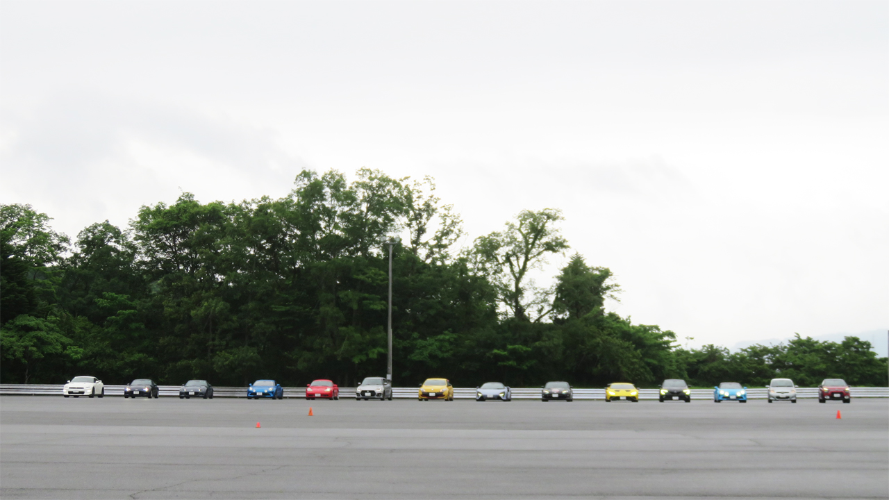 8月のとんでもなく暑い日。富士スピードウエイの広大な駐車場でYRSドライビングワークショップFSWを開催。