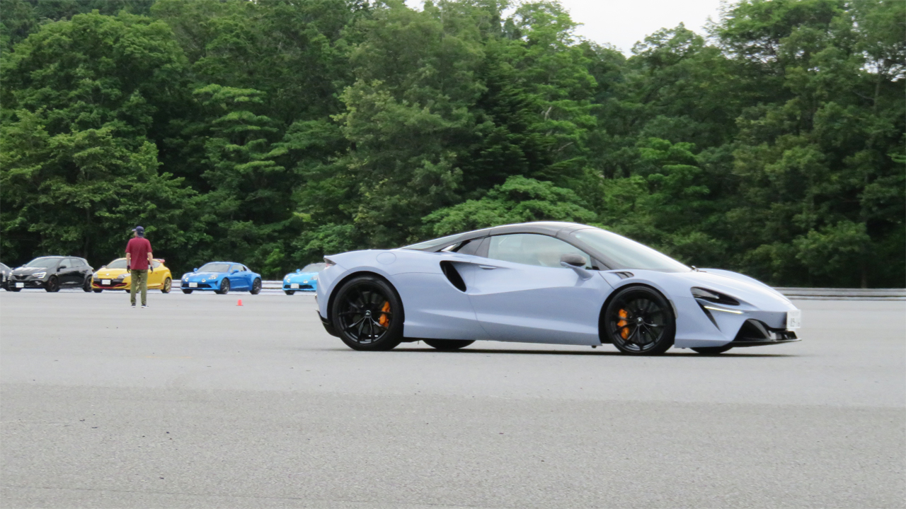 座学の後は教室で説明した操作をするとクルマがどう動くかみてもらうためにデモランを行います。運転にはやってはならない操作とやった方がいい操作、それにやるべき操作があります。操作の違いを見分けることで理論と実践のギャップが縮まります。