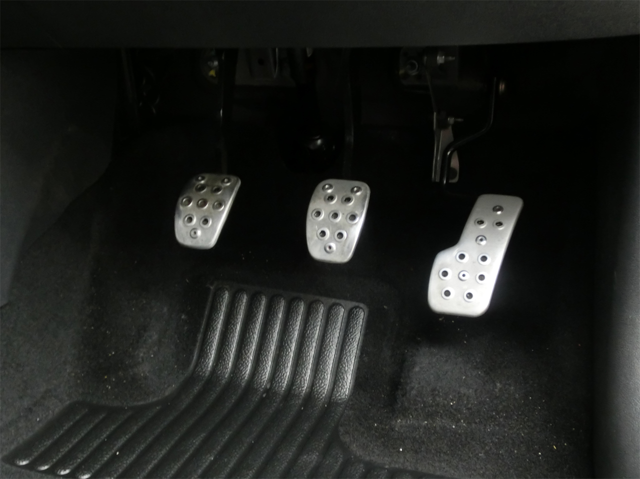かかとを固定するのはペダルの踏み換えを的確にするだけでなく、かかとを支点につま先を動かすことで繊細なペダル操作を可能にする。両足のかかとを支点にすれば上半身の安定にもつながるから、ユイレーシングスクールとしては公安委員会指定の教習所ではかかとを浮かせてブレーキペダルを踏むことを教えているとしても、かかとを固定することを強く勧めている。