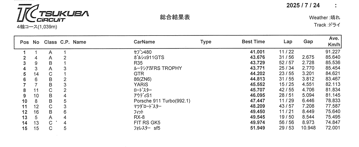 結果は初見、初走行のコースで43’75と自分ではそこそこ満足のできる走りができました。(が、まだまだタイムアップへの欲がありますが・・・)